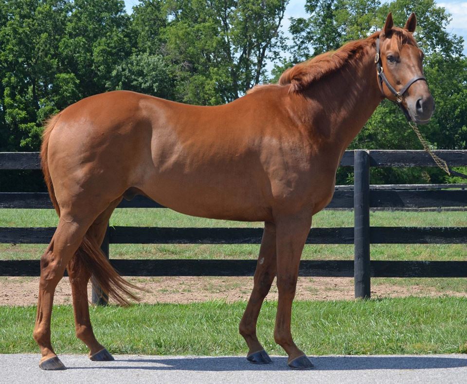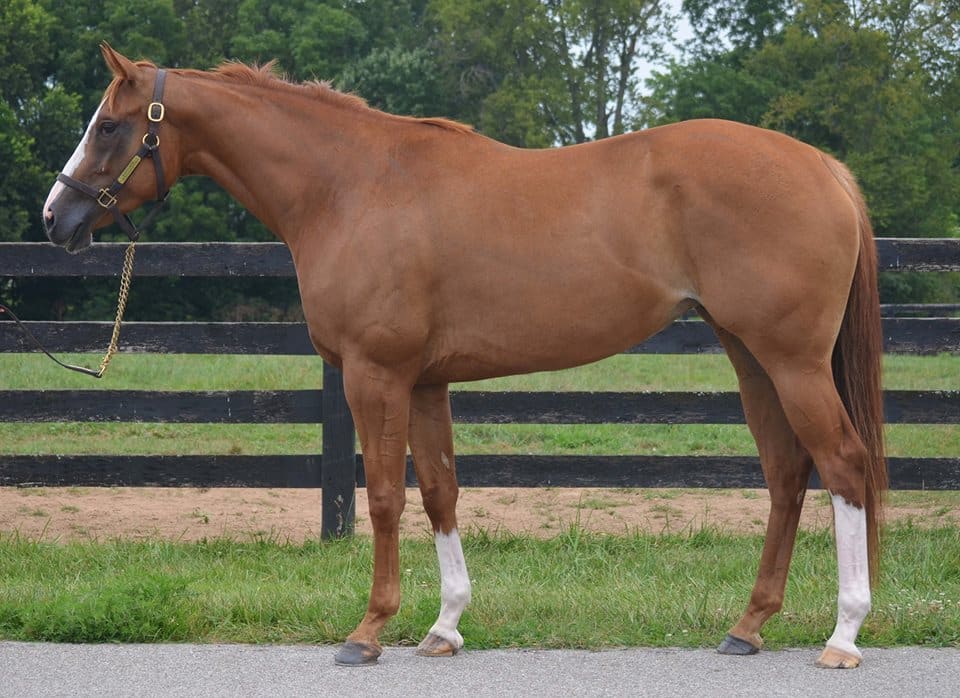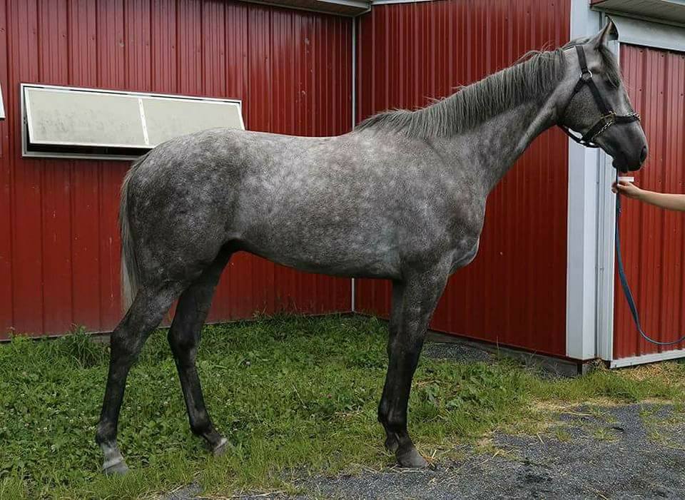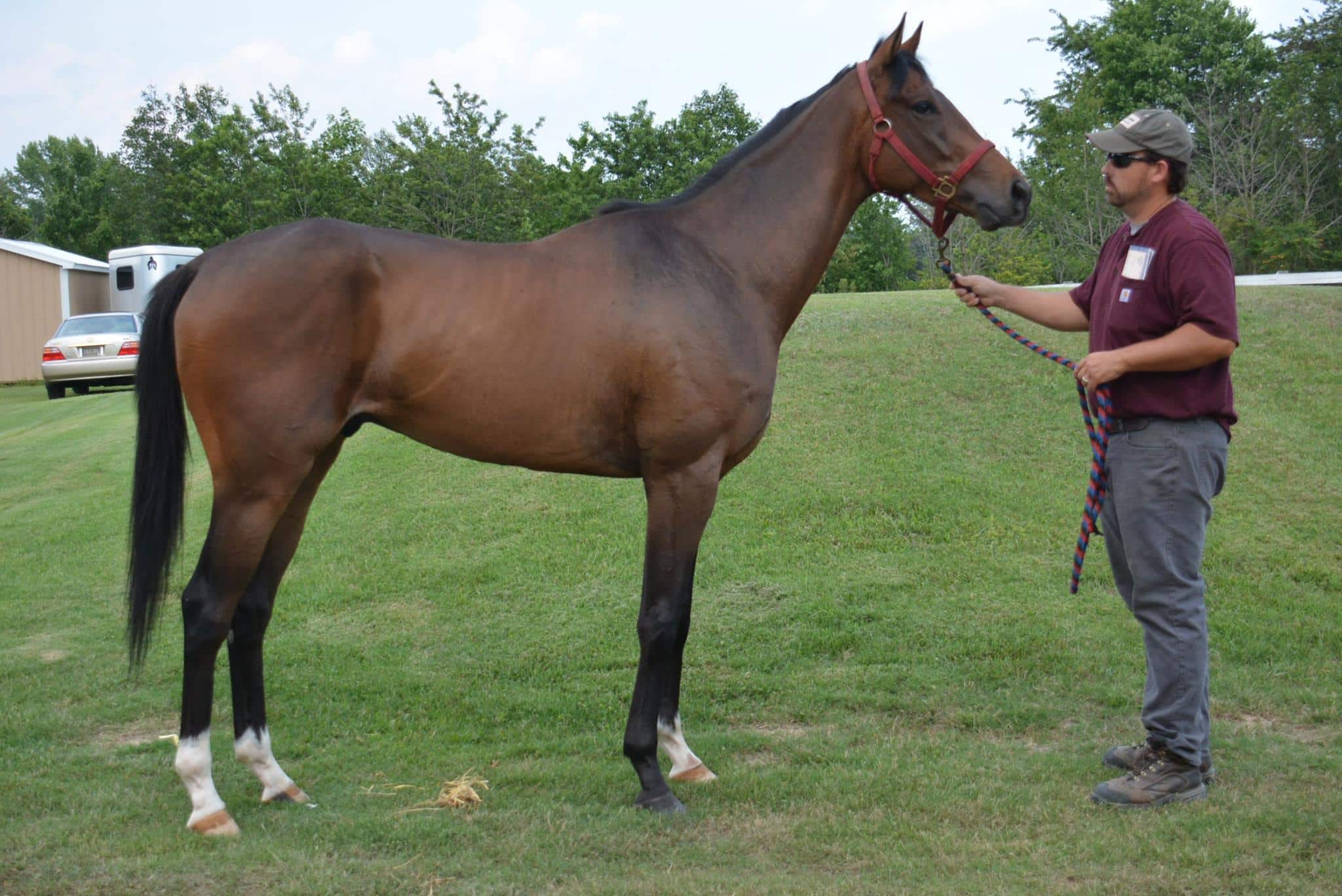 This just-off-the-track Thoroughbred’s conformation is easy to see in front of the sky and grass in the background, and although he’s not “stood up” in the classic sense, he’s standing square and you can see most of all four legs. Courtesy of Benchmark Sport Horses, benchmarksporthorses.com.