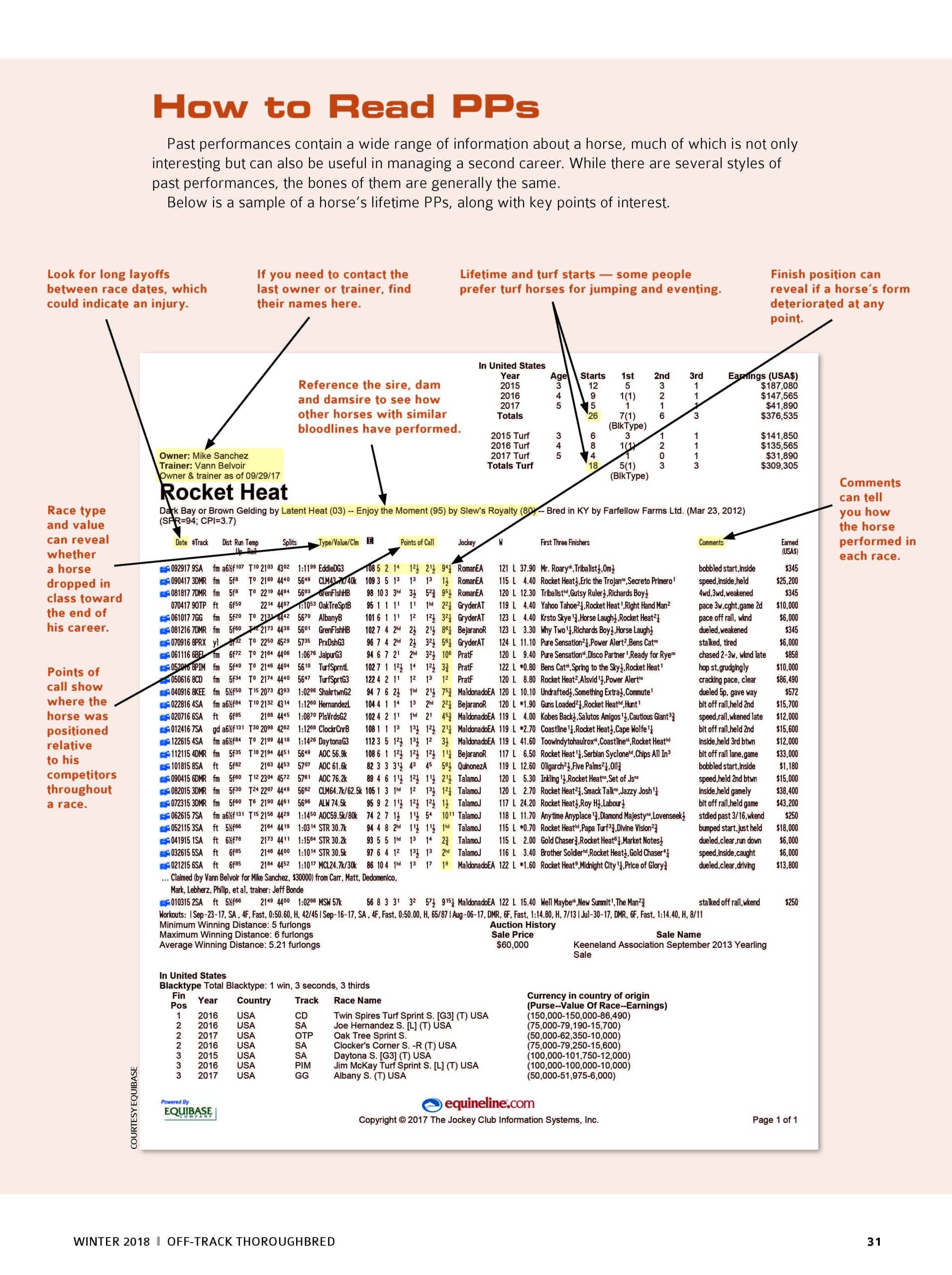 Other insightful questions to consider when perusing a horse’s PPs and race charts, says Warner, include: