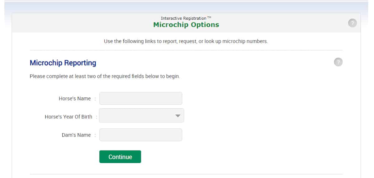 The Jockey Club Click on the “Microchips Lookup, Request & Reporting” tab on The Jockey Club’s interactive registration page (registry.jockeyclub.com/registry.cfm, you’ll need to log in or create a free account), and input your microchip number and horse information.