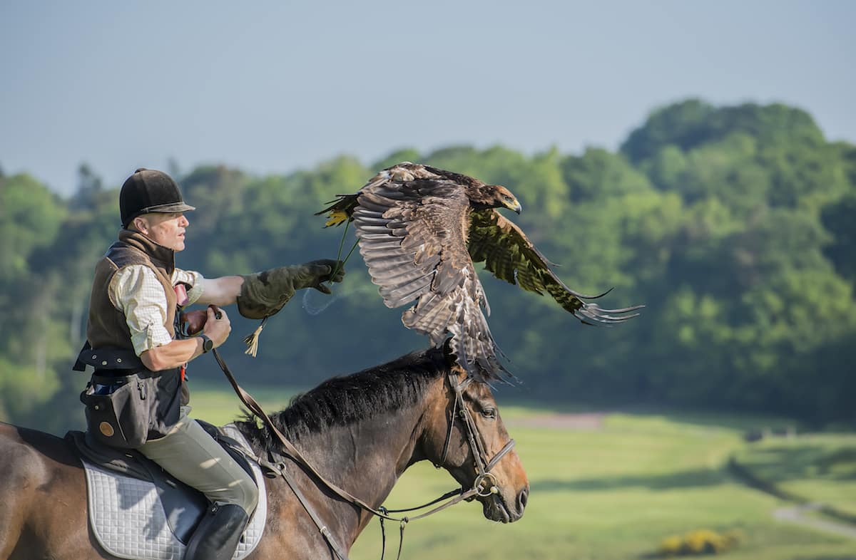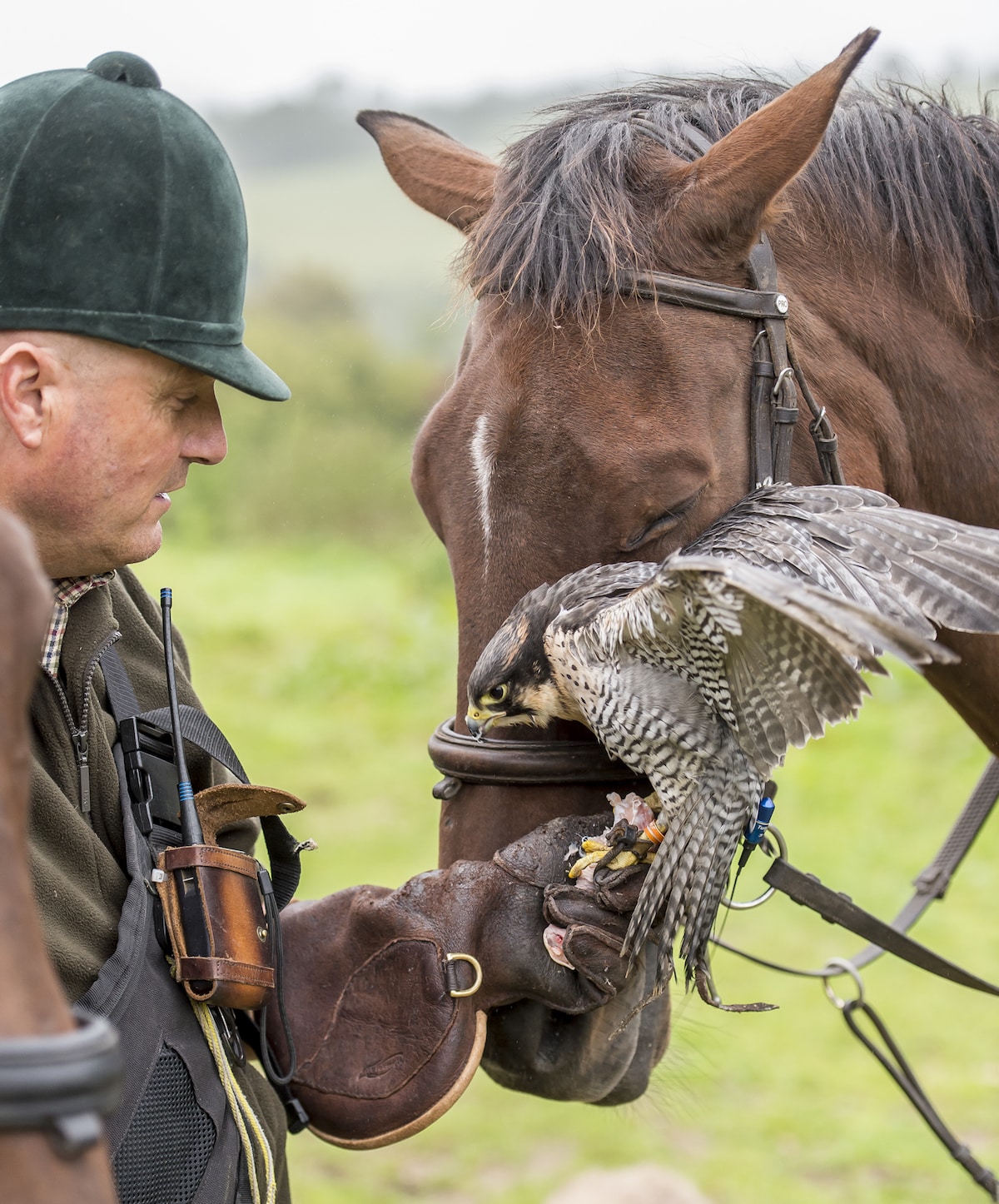 “I was riding a Thoroughbred that I was using as a hunter,” Whitley recalls, “and one of my helpers was having a bit of trouble with a peregrine falcon, and I said to her, ‘Right, hand him up here,’ and there I was.”