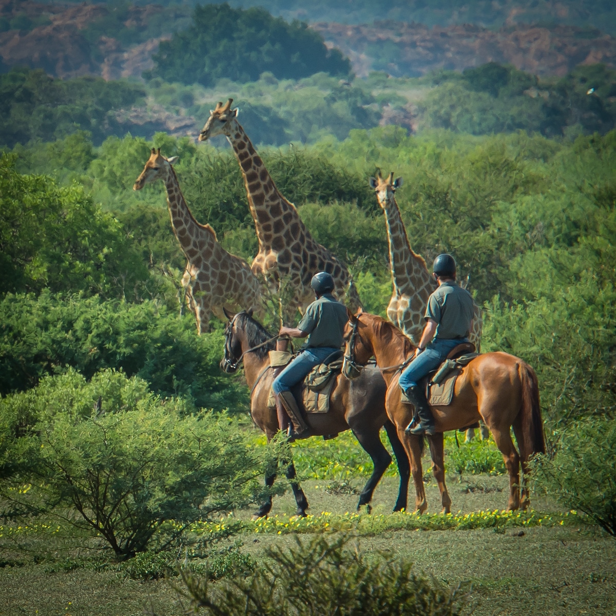 It’s those wildlife encounters, of course, that make a riding safari the ultimate horseback adventure, and the horse can be trained to take any such encounter in stride. “We take new horses out in small groups,” says Dowinton, who usually accompanies these rides on a steady, experienced horse to give the training group confidence. “Giraffe and ostrich, in particular, seem to be the most exciting for a new horse, and the first time you’ll see one, you can feel the horse’s heartbeat against your leg. We let them calmly watch, eat some grass, and they pick up the lead from the other horses very quickly.”