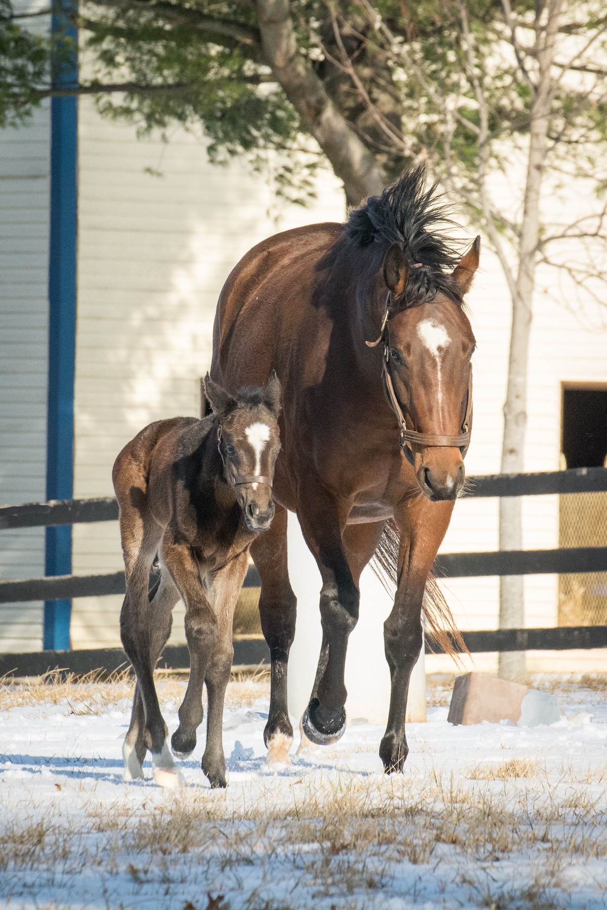 “If the weather is good and not too cold, we will take a mare out to a small paddock to foal,” Purcell says. “If the weather is too cold, we will make sure the stall is very clean and bed it down with extra bedding.”