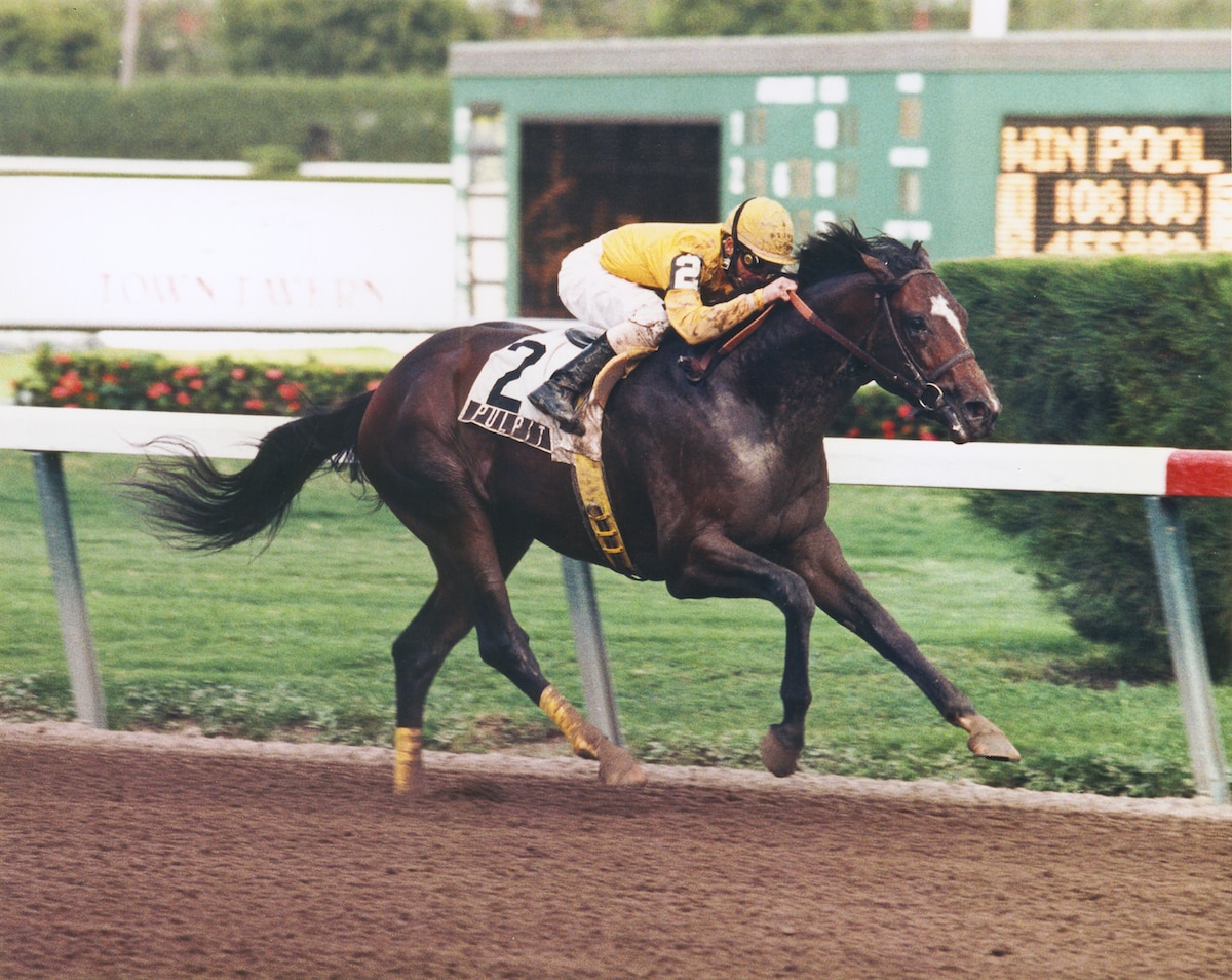Claiborne Farm’s Hancock family has historically chosen short, one-word names that reflect a horse’s pedigree. Their champion Pulpit, here, was out of Preach. EQUI-PHOTO courtesy Bloodhorse
