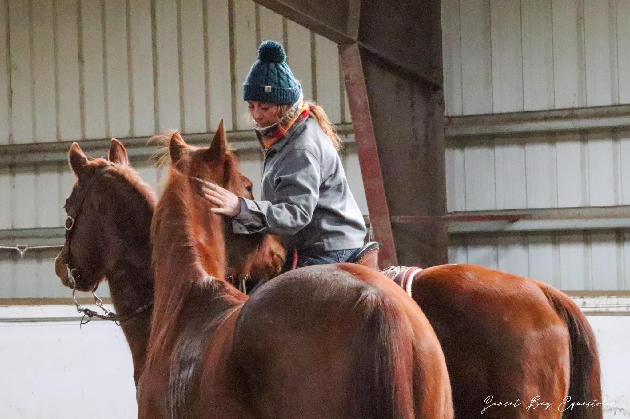 Lily Santulli ponies a young horse with her saddle horse, Red, who she claims is a better trainer than she is most of the time.