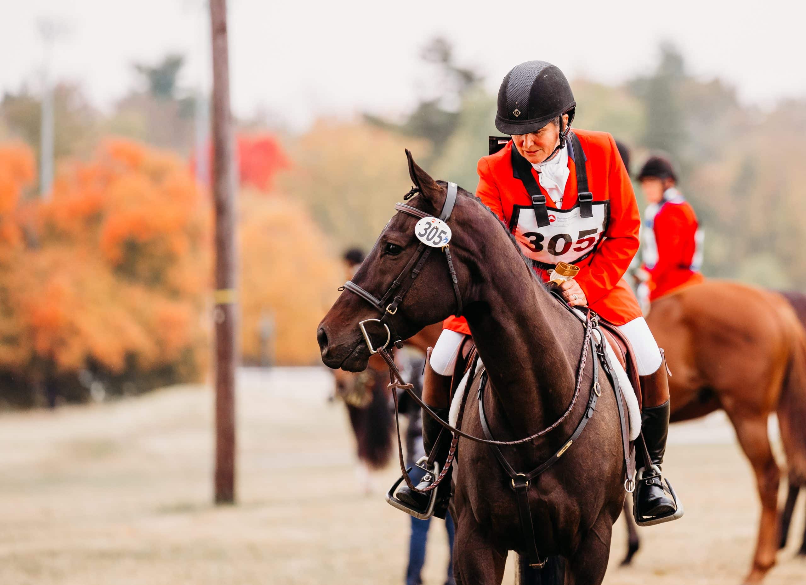 She says she tries to distract a horse that’s not paying attention to her, maybe doing a few steps of lateral work. “The most common problem is jigging,” she says. “If you really need to, you can pull out. If the horse is really upset, just pull out and go away from the hunt and come back on a different day. Or take them out of the excitement and let them calm down, and then bring them back out.”
