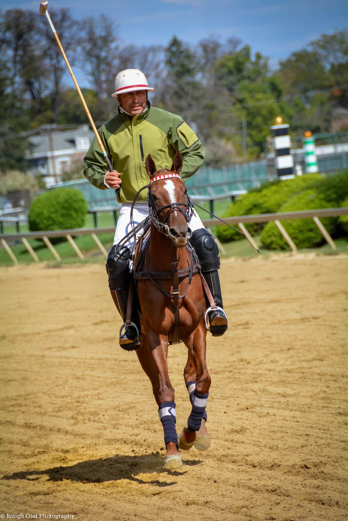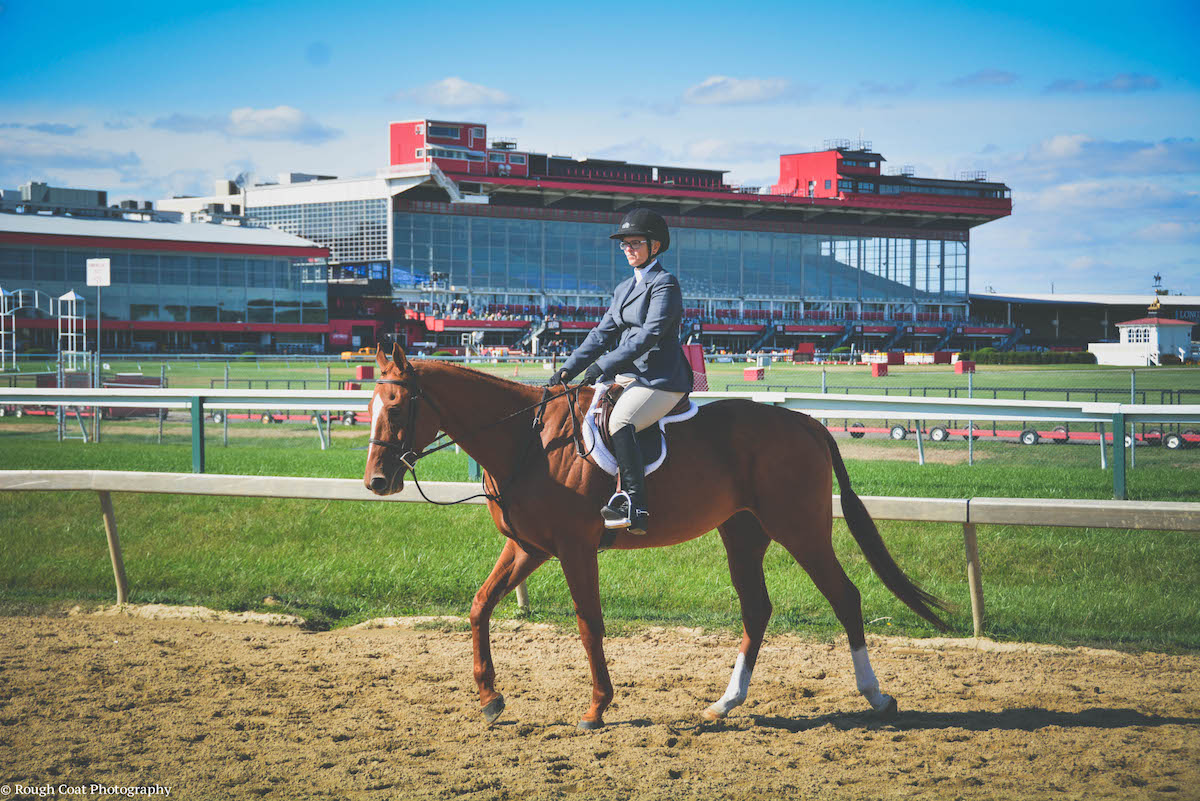 Don’t be surprised if you take a newly retired racehorse to a racetrack venue or one with a PA system for the first time and he has dejà vù. Courtesy Rough Coat Photography