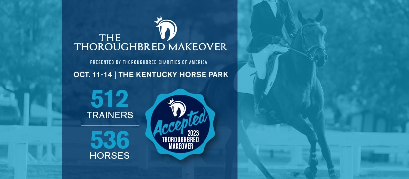 The Retired Racehorse Project (RRP) announced today that 512 trainers have been accepted to the 2023 Thoroughbred Makeover and National Symposium, presented by Thoroughbred Charities of America. The world’s largest and most lucrative retraining competition for recently-retired racehorses takes place on October 11-14, 2023 at the Kentucky Horse Park in Lexington, awarding over $100,000 in prize money.