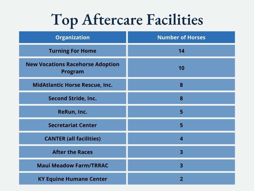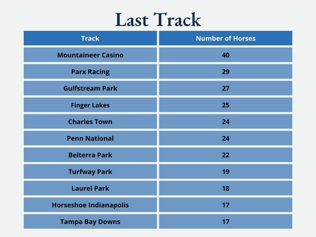 Looking at the tracks from where horses retire offers insight into where rehoming programs and aftercare organizations are making an impact, as well as what tier of racehorse tends to be retiring into second careers.