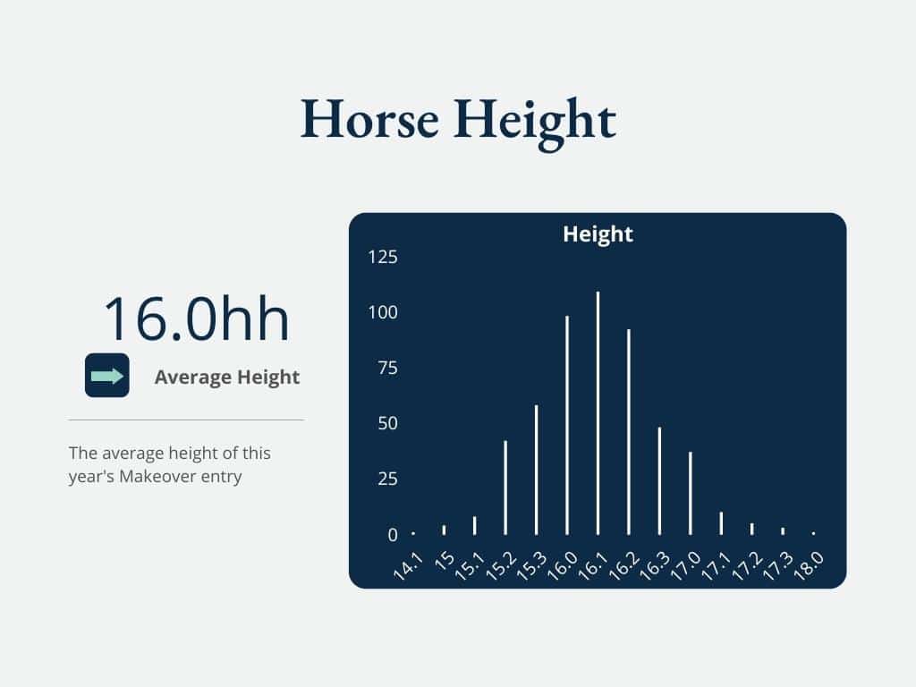 We have one proper pony entered in 2022: Dance With Bode, coming in at 14.1hh. The majority of the class of 2022 comes in at the 15.3 to 17hh range.