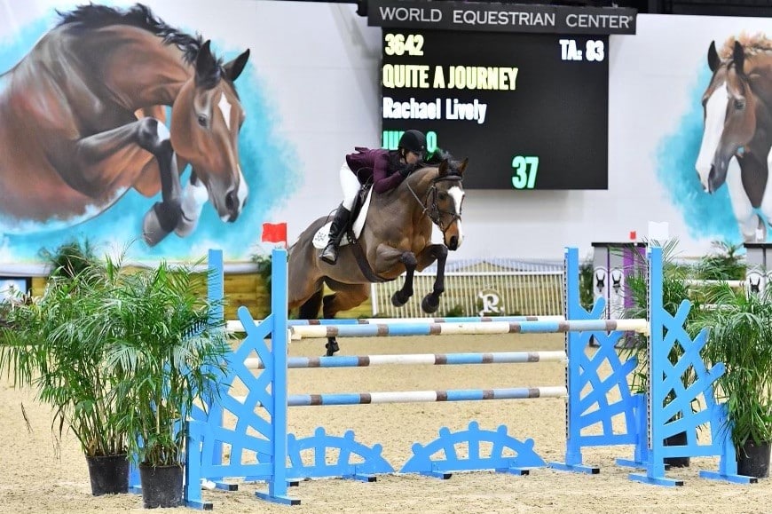 Former Jack-Fisher-trained steeplechaser Quite A Journey has found success as Rachael Lively’s upper-level jumper. Courtesy Rachael Lively