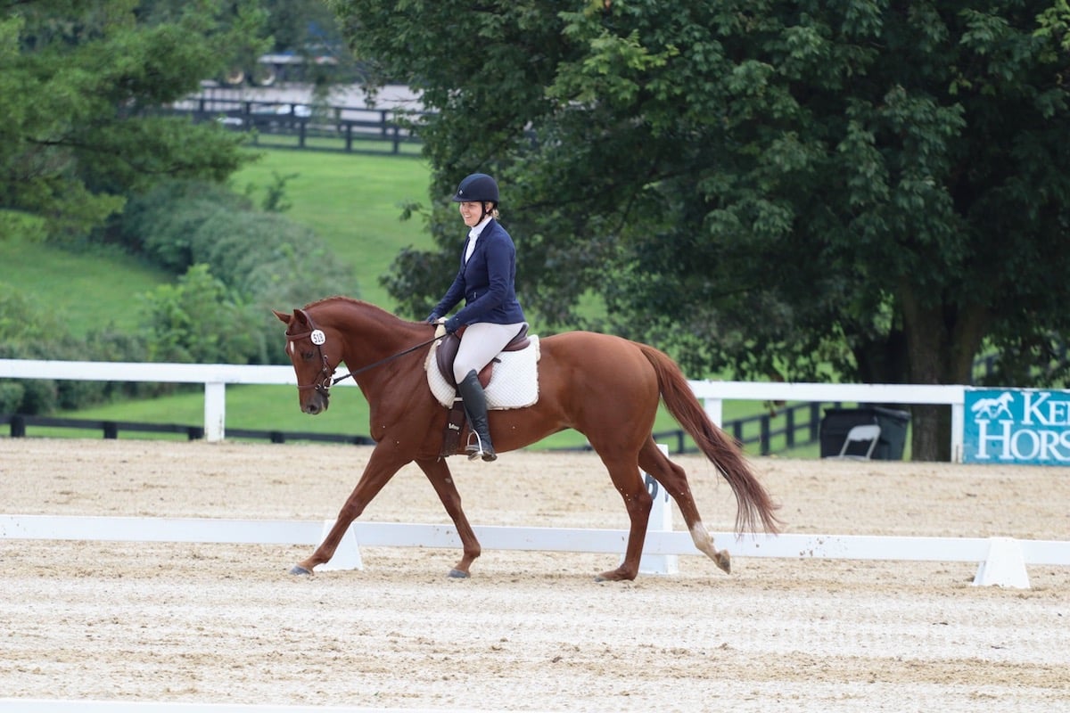 “They actually kept the horse at the rescue, they’re jumping it,” she says of the gelding, who is now 19. “This is a horse that’s pleasurably ridden, on trails, in the arena taking lessons and is jumped maybe once a month at a show, or every other month at a show, depending on the time of year.”