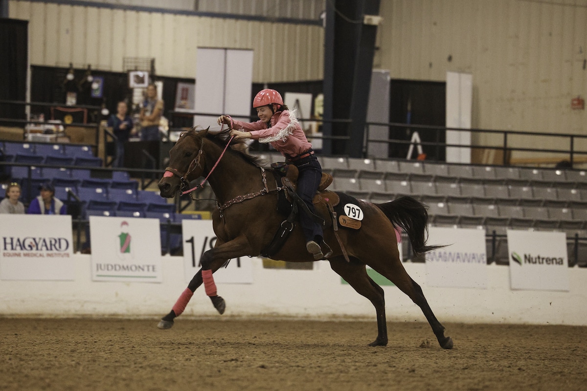 “He’s got 20 hours of police training – so he’s been through actual fire and smoke. He’s gotten a certification for mounted police training!” said Cameron. “He’s just a solid citizen. He’s a super horse. He also went and show in the [T.I.P.] western pleasure today and we’ll do ranch work later this week; he does trail, he jumps and he drags. Everything we did in our routine today was a practical skill – he can drag heavy things, he can carry a dog which means he can carry a calf. His owner Joe Kirby is looking forward to bringing him back as a T.I.P. horse.”
